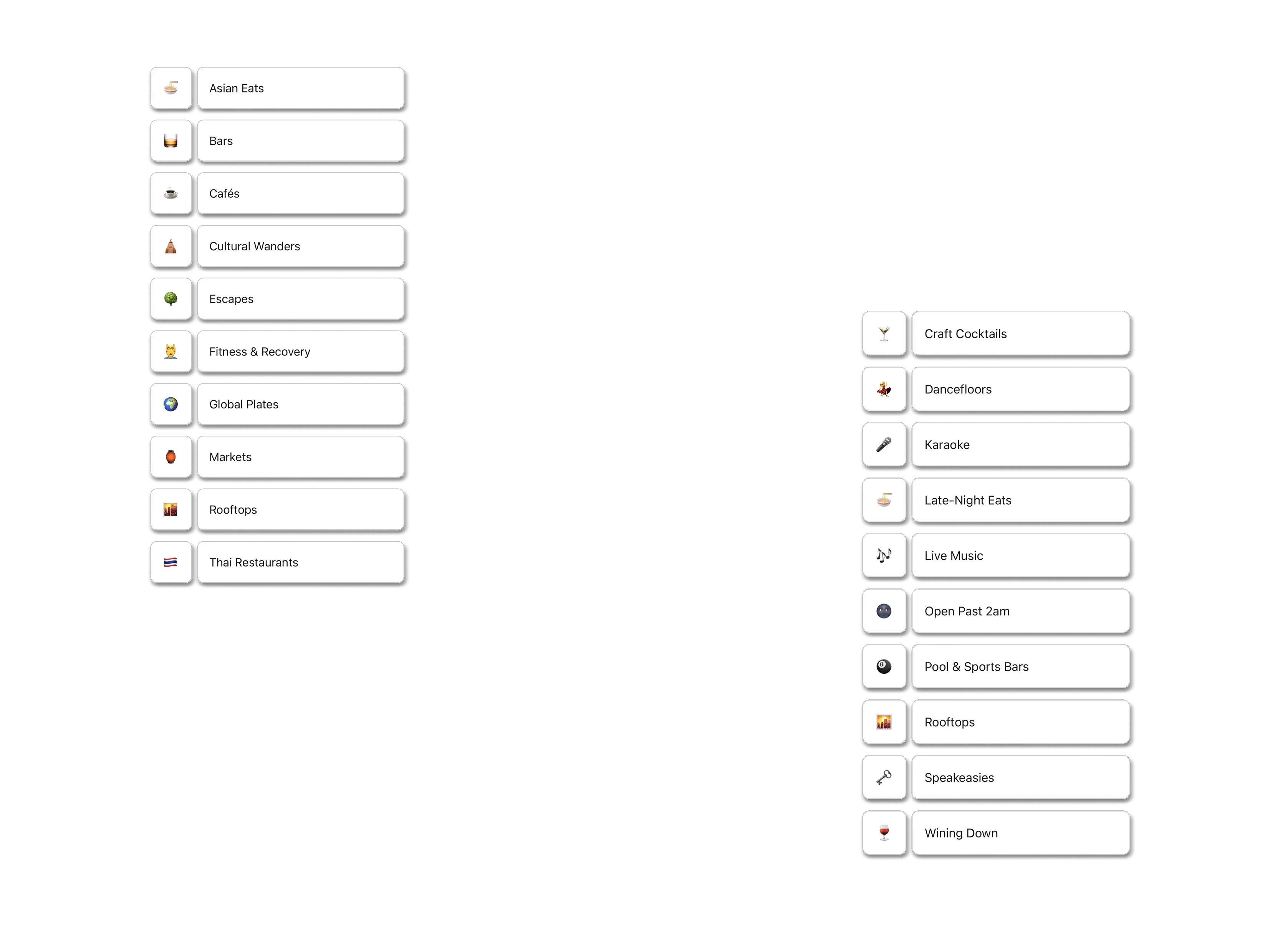 Every place in this Chiang Mai guide is tagged across categories. Whatever you're in the mood for, tap a tag and see what's already been curated.